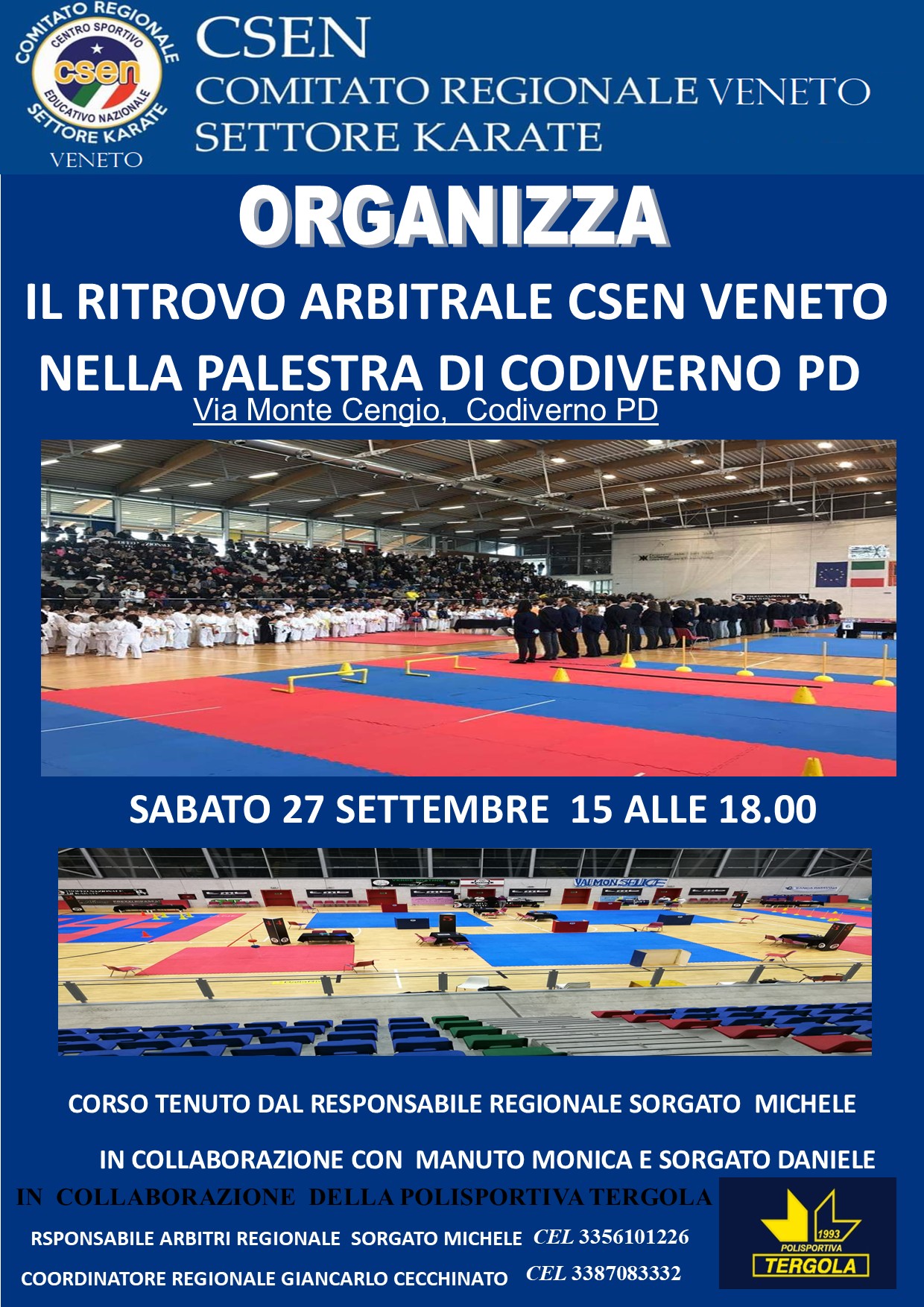 Il Settore Karate del Comitato Regionale Veneto CSEN organizza un ritrovo arbitrale rivolto agli ufficiali di gara e ai referenti del settore. L'incontro si svolgerà sabato 15 Novembre 2025 , dalle ore 15.00 alle 18.00 , presso la Palestra di Codiverno , in Via Monte Cengio – Codiverno (PD).